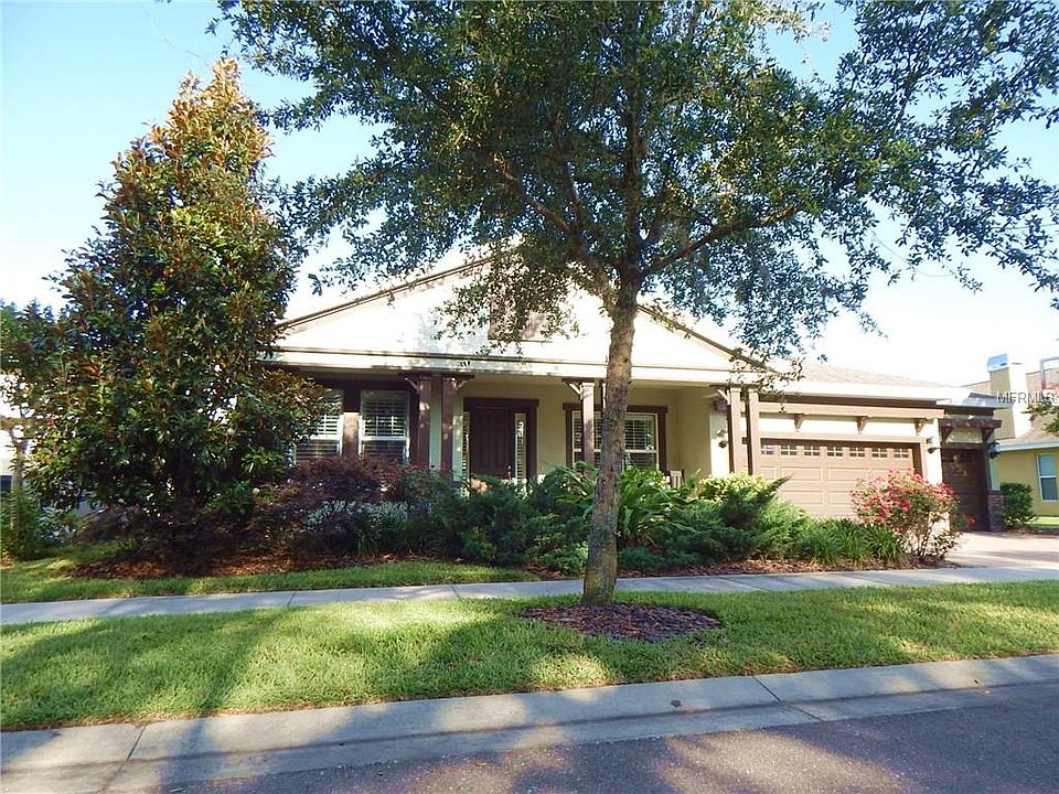 Check out this incredible Westbay craftsman style home, located on an oversized lot with wide open views, in Fishhawk Ranch Starling, one of Tampa's premiere master planned communities. The exterior features no immediate front or rear neighbors, an extra wide lot, lush landscaping, brick paved drive and walkway, a large covered front patio, an extended rear patio with pavers, and a gorgeous unobstructed view you wont find anywhere else! Inside you will find split bedroom floorplan with a spacious master suite featuring dual walk-in closets, designer shelves, a huge bathroom with dual sinks, makeup desk, open shower, garden tub, and granite counter tops, three additional bedrooms with ample size and storage space, a formal den/study with glass panel french doors, a formal dining room, eating area off the kitchen and a very large family room, with custom built in entertainment center. The custom kitchen features upgraded cabinets, granite counter tops, gas cook top, built in oven and microwave, a large pantry closet, under cabinet lighting, and more. Some of the extras include 12' ceilings and wood or tile floors in the common areas, plantation shutters and crown molding throughout, plus both a security and surround sound system. You'll also find have a spacious laundry room with custom cabinets, plus a 3 car garage with overhead storage! Fishhawk residents enjoy access to amenities such as pools, parks, rec centers, basketball, tennis, trails, top rated schools and more! (Key Largo Floorplan)