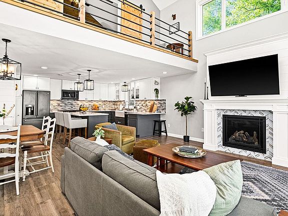 Living on Caribou Lake is more than a home; it's a gateway to a life of outdoor adventures and tranquil moments. Imagine relaxing to the call of loons and the serene beauty of the lake, where calm waters reflect the vibrant hues of sunset. This exquisite home blends contemporary luxury with natural splendor, offering a lifestyle that feels like a perpetual vacation. The open-concept floor plan seamlessly connects the living, dining, and kitchen areas. Vaulted ceilings create an airy, spacious feel, while oversized windows flood the space with natural light and breathtaking lake views. The custom-designed gas fireplace serves as a cozy focal point for cool evenings. The kitchen is a masterpiece, featuring quartz countertops, custom cabinetry, and a large pantry for ample storage. Whether you're preparing a daily meal or entertaining, this kitchen is equipped to handle it all with style. A comfortable bedroom and full bath on the main floor are ideal for guests or family members who prefer to avoid stairs. A mud area and laundry room complete this level. The upper level offers a loft space, perfect for a home office or sitting area, with Transom windows framing stunning lake views. The master suite is a private retreat with a spacious walk-in closet, second laundry, and private bath. Two additional bedrooms and a 3/4 bath complete this level. Step outside to discover an outdoor kitchen for effortless al fresco dining. The sauna and hot tub provide relaxation and rejuvenation, while the fire pit invites gatherings under the starry sky. Enjoy swimming, boating, fishing, or simply soaking up the sun from your private dock. The pole barn is a dream for hobbyists or car enthusiasts, featuring in-floor heating and a car lift for year-round projects. Additional features include mini splits for AC, hot water heat, an on-demand water heater, a house generator hook up, high-speed internet by SCI, and thermopane windows with motorized blinds. Less than 30 minutes from Downtown Duluth and minutes from schools and shopping, this home is an exceptional find. Embrace the Caribou Lake lifestyle and make this stunning property your new home.