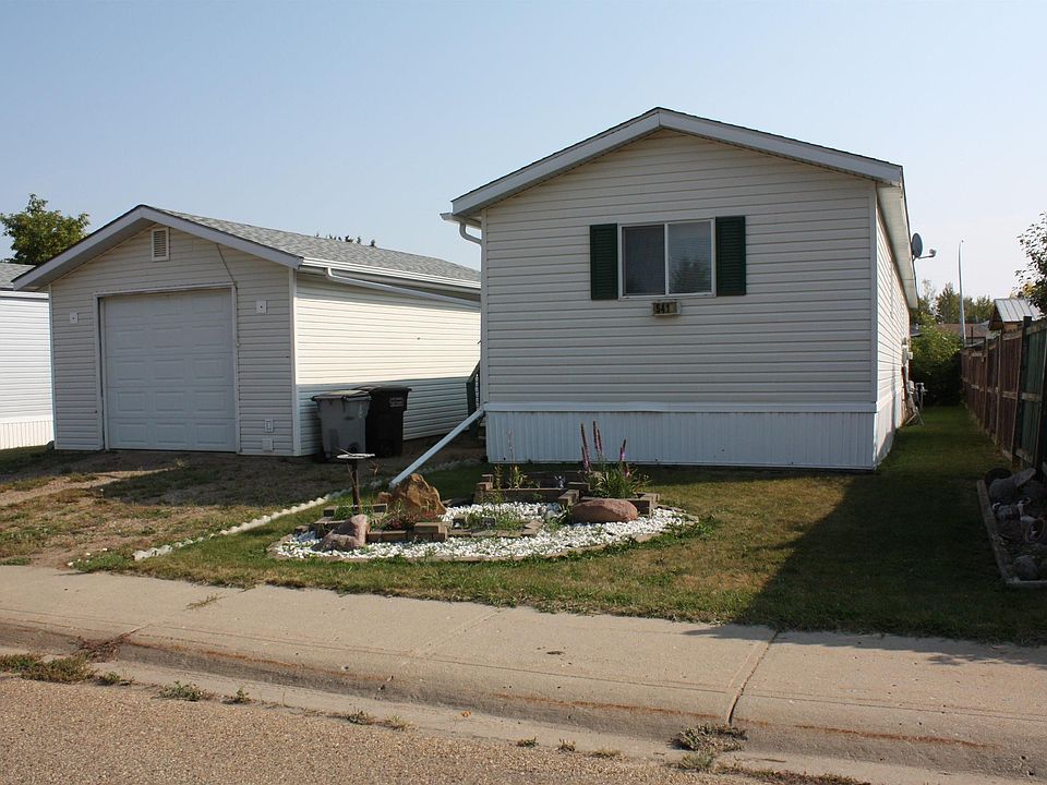 Very well cared for 16 x76 (1216 sq.ft.) 3 bedroom, 2 4pce bath moible home built in 1999, with single car detached garage.Home has open concept with vaulted ceilings, and skylight in kitchen/dining area. Dining room has beautiful built in hutch .Master bedroom with 4 pce ensuite is situated at back of mobile for privacy away from kids or stay over guests. Second 4pce bath is up front to service the other 2 bedrooms. New shingles on garage and mobile 2023, HWT 7 yrs old, Original furnace ( just replaced ignition switch it runs like a top). Mobile is in a family friendly crescent with school bus access. SITS ON A 50' X 100 ' LOT.
