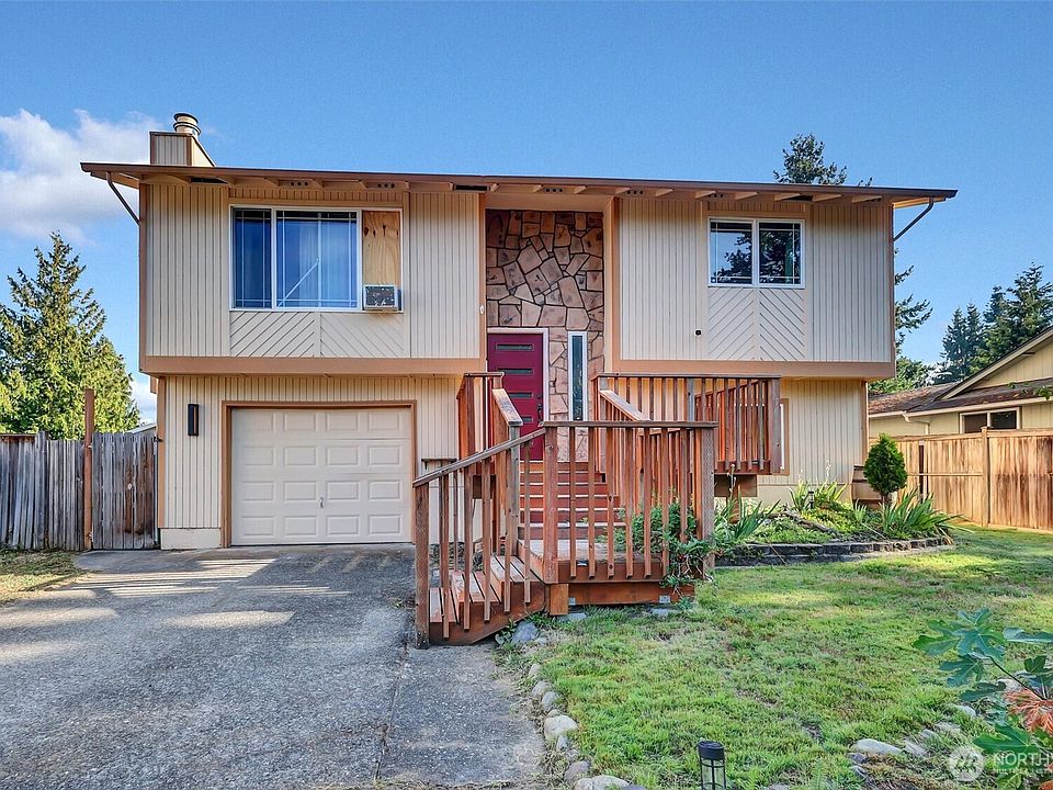 Great 3 bedroom 1.75 bath home in the heart of Marysville. Luxury vinyl plank flooring, new carpet in all the bedrooms and family room, newer light fixtures, multiple ceiling fans, new butcher block counter tops, wood burning fireplace for those cozy nights,. Landscaped front yard that's perfect for the green thumb. Rear and front decks just stained. Fully fenced with a gate in back to the community park for activities like baseball, basketball, play areas. Portable greenhouse stays. Close to shopping, schools, and I-5. This is a great value and a must to see!