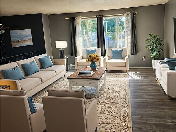 Wood burning fireplaceMultiple ceiling fansLandscaped front yardNewer light fixturesRear and front decks
