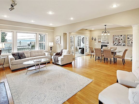 Welcome to this 1911 built home w/views of Puget Sound & Olympic Mountains from the main & upper levels. Enjoy the spacious living rm w/fireplace, dining rm & adjacent sunroom w/views to the west. The unfinished basement w/interior stairs has good ceiling heights w/potential for additional living spaces. Low ceiling heights on the upper level are begging for a remodel to capture the fantastic view - potential Master Suite? 6000 sqft lot, garden shed, & off-street parking. A must see! Sold As Is.