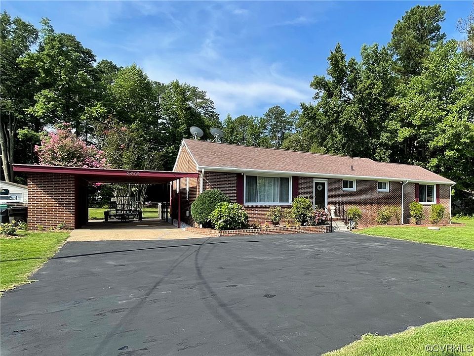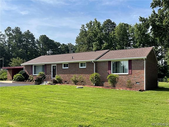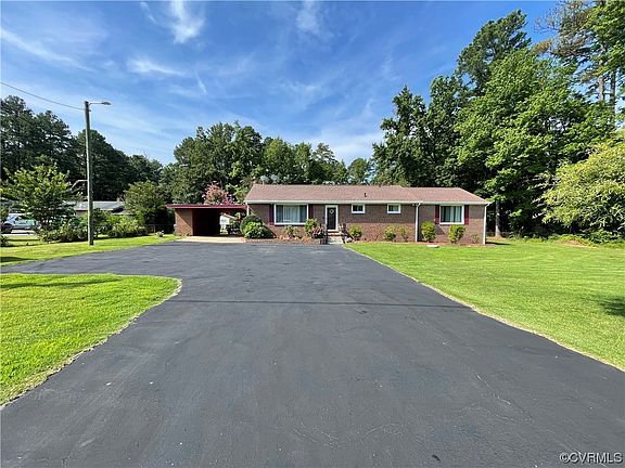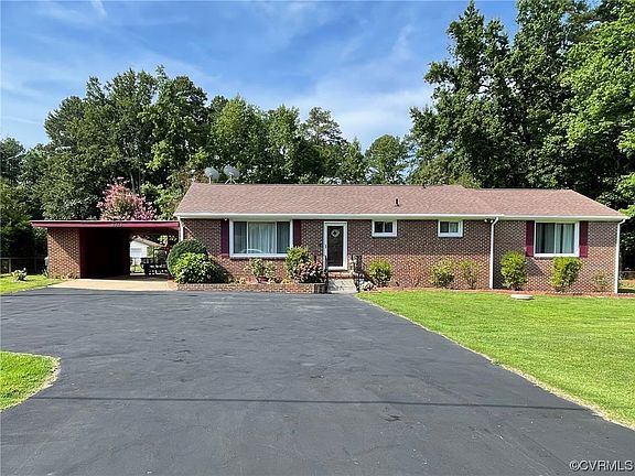 A beautiful ranch home on approx one acre with a fenced-in backyard. Situated on a nice level lot, this classic brick rancher offers three bedrooms, 1.5 bath, plus an office, and has been meticulously and lovingly maintained. The large living room features hardwood floors, a triple window, and a brick fireplace; the kitchen has new countertops and new LVP flooring; the dining room has new flooring as well; the primary bedroom offers an attached half bath; the other bedrooms are very good size with new flooring; the bonus room is perfect for your home office or playroom; the full bath has been updated. The enclosed storage at the carport and the attached shed both have electricity. The parking area is huge and will easily accommodate your truck or boat; the deck and covered patio are perfect for relaxing and entertaining. NEW energy-efficient Bosch Inverter Heat pump with warranty and transferrable three-year maintenance contract. The Oil furnace is for back-up. Other amenities include ceiling fans, tankless water heater, replacement windowd, pull-down attic, a carport, and detached shed. Move-in ready and all appliances convey. Very convenient to Fort Lee and major highways.