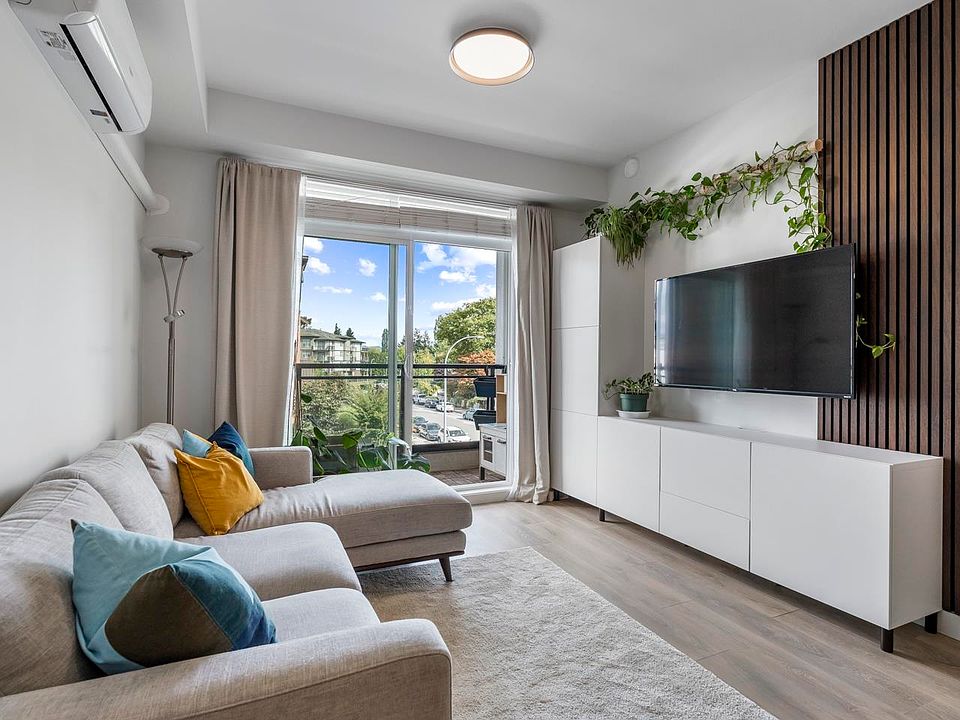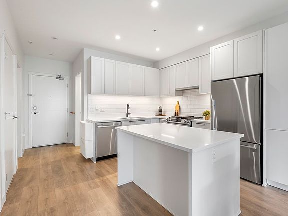 Built by Oaken Developments and backing onto a peaceful greenbelt, this modern 2 BDRM + den, 2 BATH home perfectly balances elegance & everyday comfort. Designed with a smart, open-concept layout, featuring 9’ ceilings, quartz countertops, bar-style kitchen island, premium Fisher & Paykel appliances incl. a Samsung 5-burner gas range. The primary suite offers a luxurious frameless glass shower, double vanity, and walk-in closet. Enjoy A/C, 2 secured parking stalls, and access to resort-style amenities—gym, yoga studio, guest suite, BBQ area, and bike storage. Prime location near schools, places of worship, shopping, dining, parks, Newlands Golf & Country Club, and future SkyTrain access. Built in 2021 and maintained in pristine condition—this home truly offers the best of modern living.