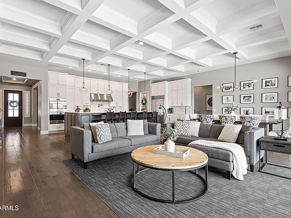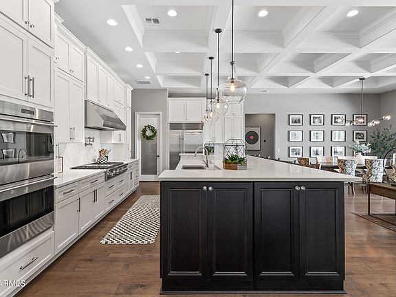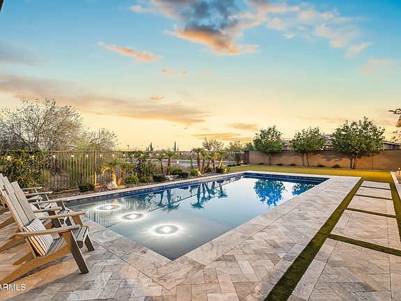 Absolutely stunning and model-home worthy 5 bedroom + office/ den, 4.5 bath, 4 car garage home w/ attached guest casita in the highly desired Lone Mountain corridor. Boasting custom finishes throughout, the home features a gourmet chef's kitchen that opens to the main living complete w/ quartz countertops, marble backsplash, extended length kitchen island + breakfast bar, soaring high ceilings, double stacked cabinets, SubZero fridge/ freezer, 6-burner Wolf gas cooktop w/ hood and pot filler, Wolf double-wall ovens & built-in microwave, Asko dw, Butler's pantry w/ 2 GE Monogram beverage fridges, plus a full walk-in pantry. The expansive main living and dining room open to the luxe resort-style backyard w/ a 4 panel telescoping stacked door, lg. covered patio, private Pebble-Tec pool w/ baja step and multiple water features, custom backyard ramada with TV, natural gas fireplace, built-in BBQ center w/ Primo smoker, 2 bucket sinks, and beverage fridge. Backing to a natural desert wash, this exquisite backyard also boasts view fencing, artificial turf, travertine stone pavers, mature landscaping, breathtaking sunset views, and more. Ideal for entertaining or everyday indoor outdoor living!