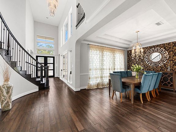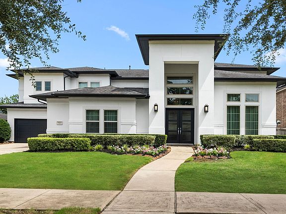 This exceptional, multi-generational, 6-bedroom, 5-full bathroom home in Riverstone offers unrivaled space and amenities. The unique floor plan is perfect for extended family and grand entertaining. Downstairs, soaring ceilings in the main living area create an immediate sense of grandeur. The gourmet kitchen is a chef's dream, featuring double ovens, pot filler, gas stove, and large island that opens to the living area. Three private bedroom suites on the first floor offer comfort and convenience. Upstairs, you'll find a versatile game/workout room, a dedicated media room, and three additional bedrooms with two full bathrooms. Outside, a covered patio is perfect for entertaining, complemented by a private courtyard. Located in the highly sought-after Riverstone community, this home is zoned to exemplary Fort Bend schools and is just minutes from major freeways, shopping, and dining.