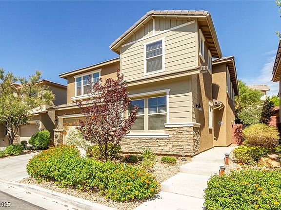 "Location, Location, Location" in the prestigious "The Mesa", heart of Ladera, Summerlin. 3 bdrm., Den/Living Room + Loft upstairs, large Primary Bdrm, featuring a covered Patio & spacious walk-in closet. (The closet has custom shelves and built-ins). Laminate flooring throughout living areas, bedrooms carpeted. Backyard Retreat, with artificial turf. Seller recently replaced entire landscape drip system and professionally repainted the entire exterior of home. This 2,816 sq. ft. home has much to offer. Seller has made recent upgrades, a MUST See! The Community Park & Pool adds to family enjoyment year-round.
