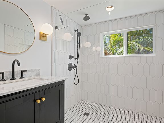 Mature landscapingHandheld wandPrivate patioEn-suite bathroomMatte black fixturesDedicated workspaceMarble countertops