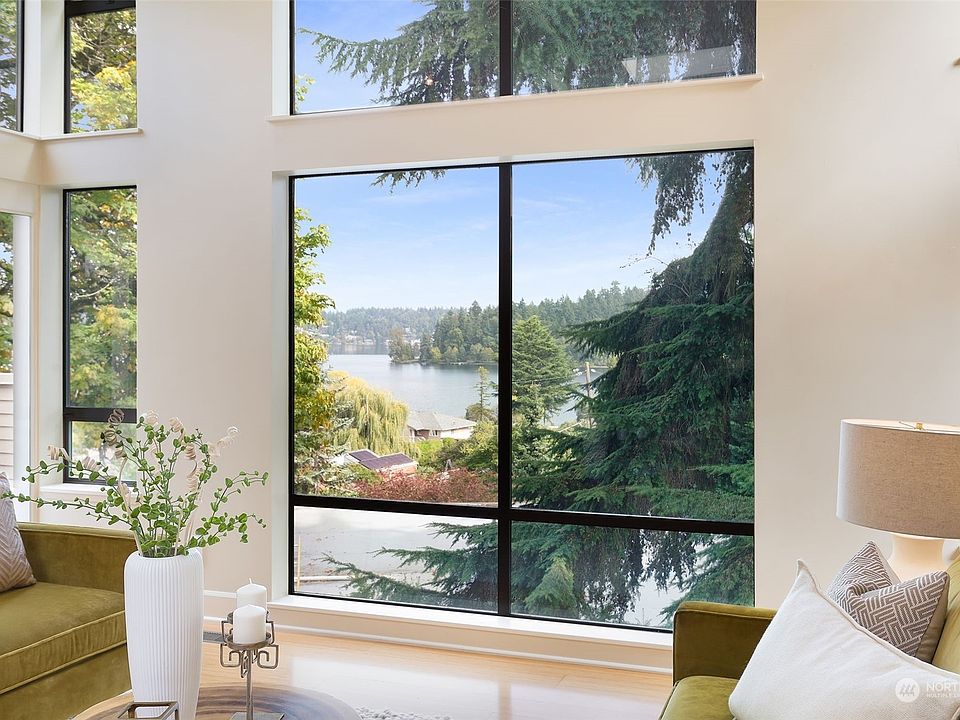 Welcome to your own private sanctuary nestled in the hillside just off the lake. Tranquility prevails in this elegant Seward Park Contemporary with protected views of Lake Washington & Andrews Bay. Exquisitely remodeled in 2012 and designed to embrace the calm and beauty of the natural surroundings. Expansive 2200 sq ft main floor is ideal for daily living and entertaining on any scale. Luscious Gourmet Kitchen. Private Den. Formal Dining. Grand, Light Filled Living Room. At the end of the day retreat to the primary suite with a stunning Zen inspired spa bathroom. Step outside to the spacious 680 sq ft deck to revel in the view. Lower level completes the home with a guest suite. 2 car garage & plenty of parking for all your guests.