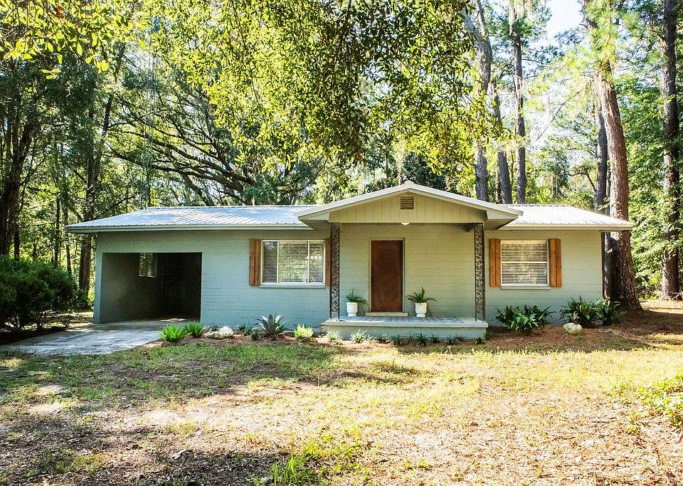 This gorgeous 2/1 has been remodeled and EVERYTHING is brand NEW! The kitchen has granite countertops and beautiful white cabinets with brand new stainless steel appliances. The house has new vinyl plank flooring, upgraded lighting, and a completely remodeled bathroom. Washer and dryer onsite, and a beautiful wooded, fenced yard that is almost an acre. Your pets are welcome and you'll enjoy the calm setting surrounding by gorgeous trees while being centrally located and only a few minutes from Target, Walmart, Publix, and other great shopping destinations. The house is within minutes of UF, Santa Fe College, Shands and North Florida Regional Medical Center (HCA.).