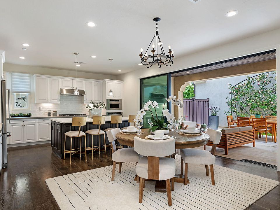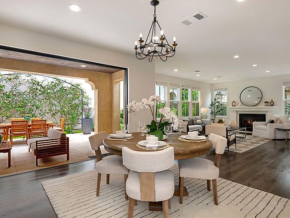 This upgraded Spanish-inspired home, built in 2019, offers 3 bedrooms, 3 bathrooms, and 2,224 sq ft of beautifully designed living space. The chef's kitchen features quartz countertops, stainless steel appliances, rich wood cabinetry, and a large island with breakfast bar. The open dining area leads to a lush yard and a covered California Room with fireplace, TV, and outdoor dining space. The spacious living room includes a gas fireplace and designer window coverings. The primary suite boasts mountain views, a walk-in closet, and a spa-like bath w/ a walk-in shower and soaking tub. Located in the serene Tree Farm community with trails, pool, fitness center, and clubhouse, all within the sought-after Kellogg School District. Buyer to verify sq ft