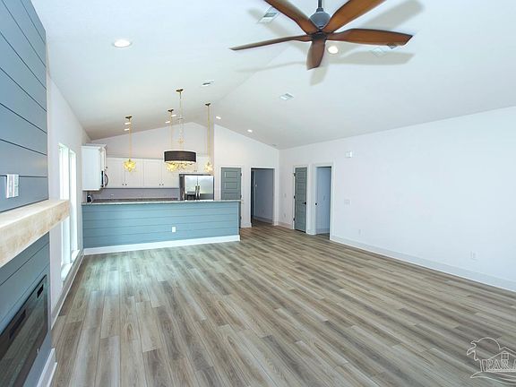 Seller pays $5000 in buyer closing costs or interest rate buy down with full price offer! Brand new 3 bed, 2 bath and single car garage home in the desirable Perdido area across from Big Lagoon State Park and minutes away from Perdido Key beaches. A first of its kind design offering a large covered front and back porch, with beautiful architectural brickwork, the gorgeous vaulted ceiling in the main common area of the home provides an expansive spacious feel. This home also offers an additional office area for easy work from home. You will enjoy custom details like the electric fireplace in the great room and the beautiful custom tile shower in the primary bathroom and hall bath with tub. Flex space off the hall with barn door can be an office nook or additional storage - you decide! Neighborhood has no fees to pay but offers a community park with tennis courts.