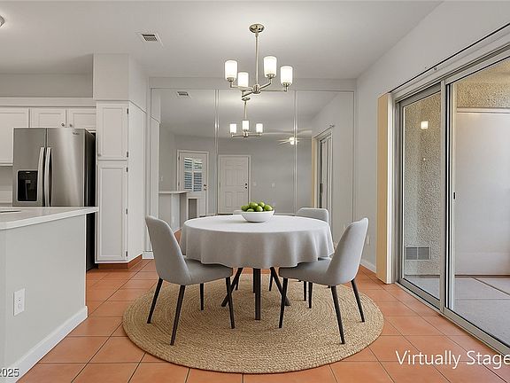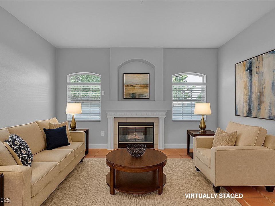 Step into this freshly updated 2 bed, 2 bath condo with a den in the gated Opulence community. It’s the largest floor plan here and even comes with a detached garage. The kitchen feels brand new with quartz counters, stainless appliances, LED lighting and an open layout to the dining and living areas. The whole place has fresh paint and easy-care tile flooring. Both bedrooms have walk-in closets and their own full bath. The cozy living room has a fireplace, and the den works great as an office or guest space. Recent updates include a 2025 HVAC, newer water heater, dishwasher, gas range, microwave and upgraded baseboards. The community has 3 pools, spas, gym, BBQ area and clubhouse. Close to shopping, parks and the Strip. Move-in ready and waiting for you.