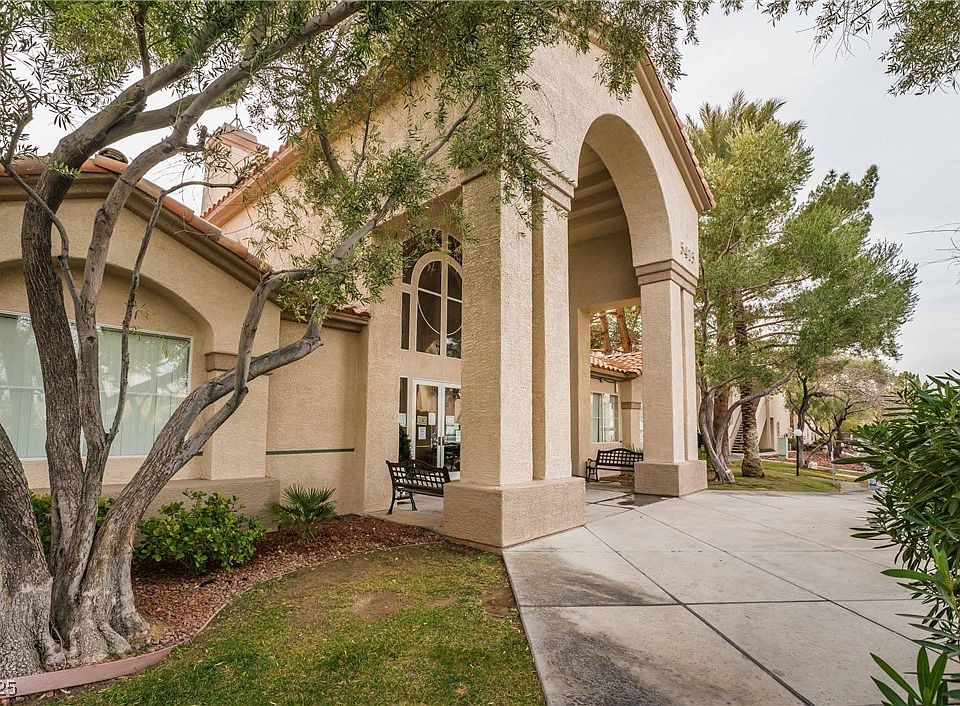 Great location near the strip, Gated community with gazebos & BBQ's, community Clubhouse, 3 pools & spas, mature landscaping. First floor, spacious layout, 2 bedrooms, laminate flooring throughout entire rooms, cozy living room with a fireplace. Both bedrooms has walk-in closets.Fresh paint, Brand new stainless steal kitchen appliances.