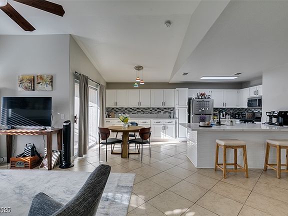 Welcome home! This spacious 2nd floor condo located in the sought-after Opulence community boasts 2 bedrooms AND a den! You'll find a bright and airy living room with vaulted ceilings, gas fireplace, creating a cozy atmosphere. The adjacent dining area flows seamlessly into the remodeled kitchen, which features abundant cabinet space and modern finishes. The den, accessible through double doors, offers a versatile space separate from the bedrooms. The large primary bedroom includes a walk-in closet and an en-suite bathroom. Community has some impressive amenities, including multiple pools, a fully-equipped gym, clubhouse, and gated entry for added security. Easy access to schools, parks, shopping, and casinos. Schedule your showing today!