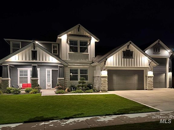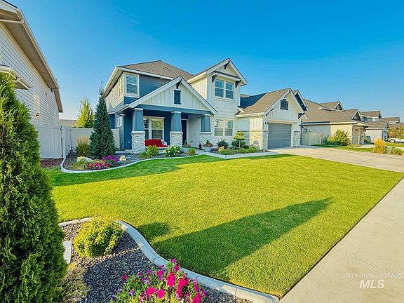 Stunning 5 bedroom home with dedicated office, bonus/6th bedroom, plantation shutters & recessed lighting throughout, all beneath 10-ft ceilings & upgrades galore. The open living area has fireplace with custom built-ins, a three-panel sliding door for indoor/outdoor living, a gourmet kitchen with huge island, upgraded JennAir appliances, & upper/lower cabinet lighting. Quartz counters & soft-close cabinetry throughout including laundry room that features upper/lower cabinets & utility sink. The spacious primary suite includes a private patio, walk-in shower with three heads, and direct laundry access. Fully landscaped with curbing and cement work, smart sprinklers, pit drain, & underground gutter drains. Private gated landscaping leads to the pool, sport court, pickleball, stocked pond, & parks. Oversized 42’ x 17’ RV garage, fully finished, with 14’ roll-up, rear door, 50 AMP, cleanouts, & dual electric panels. Full-home water softener, reverse osmosis, & hot-tub prewire included.