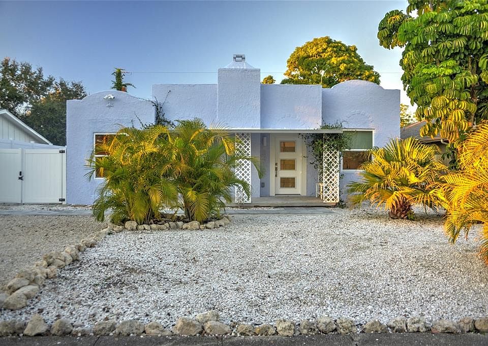 Don't miss out on this unique and charming, early 20th Century Mediterranean style hacienda featuring a fully-renovated interior that gives it a modern cottage feel. This beautiful and serene 2/1 home is just minutes from world renowned beaches and offers an abundance of natural light, high ceilings, and luxury vinyl flooring throughout. New French doors lead to the tropical oasis that awaits out back! The backyard is made private by mature landscaping and a newly installed 9' vinyl privacy fence, and offers a brand new deck space with a pergola that leads to a large tiled outdoor shower. The bright and modern kitchen features new appliances and granite countertops with a waterfall design. The possibilities are endless thanks to the open floor plan, which affords the flexibility to accommodate a variety of needs and tastes. There is no HOA, so you will not have to worry about community rules or added monthly fees, making this a great home for full time living, a vacation home or a potential income property. Upgrade highlights include a new A/C system (2024); whole-home water treatment system; newly installed double-pane high-impact windows with designer grade privacy shades; enlarged bathroom (2024) with designer tub; sealed roof with new gutter system; new irrigation system; new high-end washer and dryer; new hot water heater; and fresh wallpaper and paint throughout. Additionally, 240v wiring has been installed and is ready for your Level 2 EV charger. Your new home is conveniently situated just minutes from downtown (6 minutes/2.8 miles), Holmes Beach/Anna Maria Island (12 minutes/6.2 miles), and the Sarasota/Bradenton International Airport (25 minutes/11 miles). Schedule your viewing to check out this beautiful tropical oasis today. This is the opportunity and Florida lifestyle dream you've been seeking.