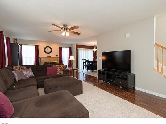 Situated in North Ridgevilles popular Meadow Lakes community, this 4 bedroom, 2 full, 2 half bath home boasts recent updates and is in pristine condition making it easy to move right in! The open floorplan has a large great room with gas fireplace, ceiling fan and new flooring. The eat-in kitchen has plenty of counter space, nice-sized pantry, and stainless steel appliances. The sliding glass doors lead to the spacious deck and large backyard with no rear neighbors. Enjoy even more space in the finished basement. Recent updates include fresh paint, brushed nickel lighting and door handles. Two car attached garage and lush landscaping finish out this home. Come see today!