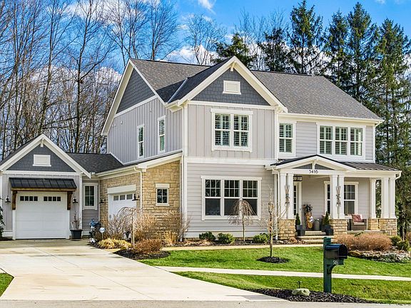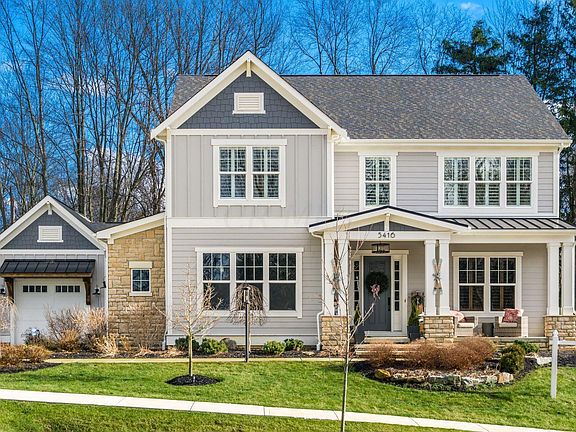 Former custom model features incredible open spaces w/10' ceilings & 8' doors on 1st level. Abundancy of privacy, views & natural light ! Covered veranda leads to spa & wooded preserve. Large quartz island & professional appl. Large mud room & office w/attached full bath complete 1st level. Master suite w/box tray ceiling. 3 bdrms on 2nd level w/walk in closets & attached baths. Lower level features finished media room, bedroom & full bath & leads to beautiful stamped concrete patio w/gas fire pit. Addt'l upgrades include: 3 zoned HVAC, 2GIG smart panel, Pella windows, 220v spa panel, plantation shutters, backup sump pump, radon mitigation, ceiling speakers, prof'l landscaping w/lighting, garage cabinetry, electric sub panel upgrade, electric pet containment & full irrigation. MUST SEE!