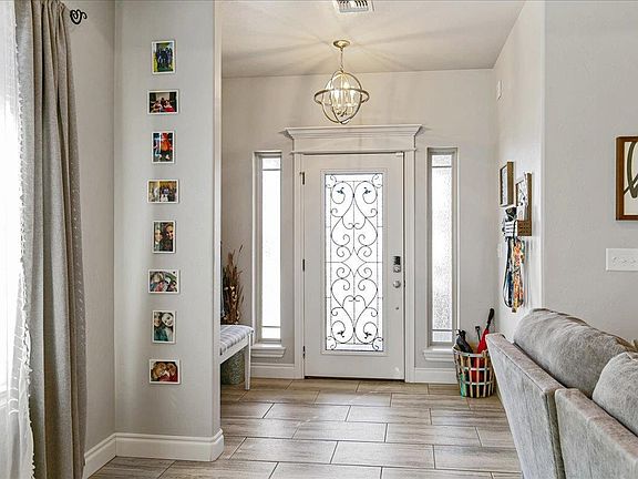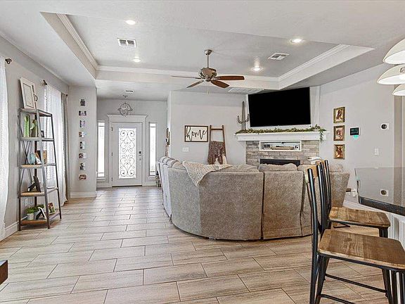 Gorgeous home in Dove Creek that does not disappoint! This home offers approx. 1800 sq ft with 3 bedrooms, 2 full baths and a 3 car garage. Spacious open living room floor plan has gas fireplace with room to hang the TV above. Kitchen boasts stainless steel appliances to include the refrigerator and a gas stove, an island, breakfast bar and a pantry. Primary bedroom is huge to accommodate very large furniture, the primary bath has a whirlpool tub, separate tiled shower and a walk in closet with great built ins. The home has a soft water system for the whole home. There is a separate utility room with storage and a nice folding table. Throughout the home you will find granite countertops, custom cabinetry, carpet and ceramic tile. Additional bedrooms are good size and both feature nice closets with shelves. The tankless gas water heater provides an endless supply of hot water. Nice covered patio and no neighbors behind the home for added privacy. Front door has a keyless entry pad and the home is wired with a Vivint home security system that is staying with the home. Call for a showing!