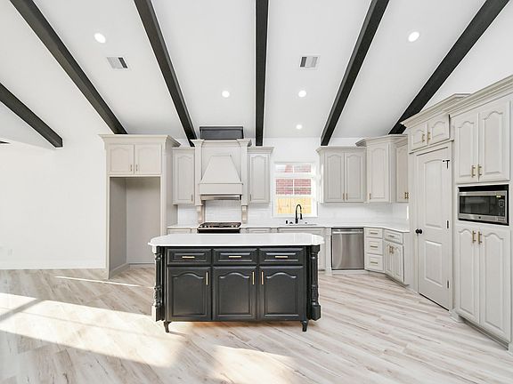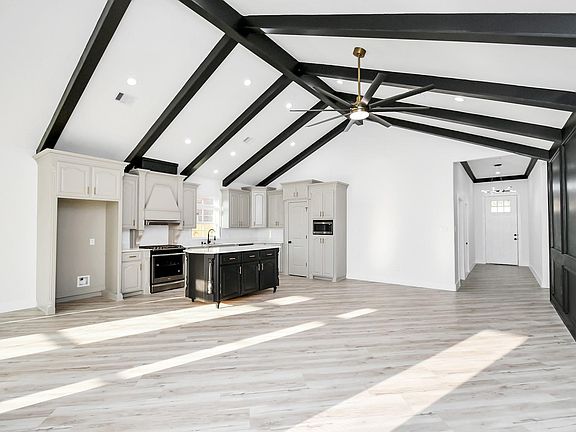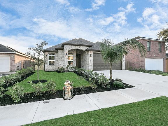 Welcome to this beautifully designed custom-built home featuring 3 spacious bedrooms and 2 luxurious bathrooms. The open-concept layout boasts a cathedral ceiling with striking painted beams, and the heart of the home is a custom kitchen with sleek quartz countertops, high-end appliances, and a hidden door pantry for added style and convenience. The expansive living area is highlighted by a modern accent wall, and large windows flood the space with natural light. Step outside to enjoy the covered patio, perfect for year-round entertaining or relaxation. High-end fixtures, luxurious finishes, and quartz accents are found throughout, making this home a perfect blend of elegance and modern design. All around brick construction, gas appliances, and walk-in showers! 7 minutes from Pearland town center, 15 minutes from downtown, minutes from all the good restaurants! Schedule a tour today to experience this unique gem!