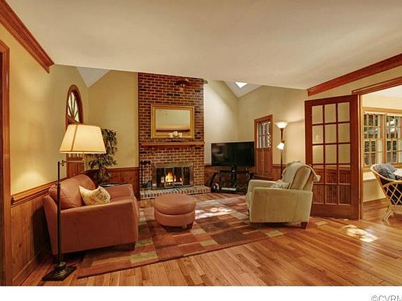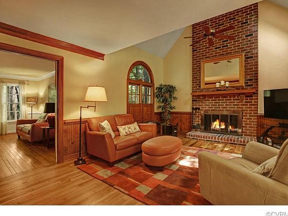 Fall in love with Sunrise Bluff located in the award winning community of Woodlake. Upon entering the welcoming front porch you will notice the beautiful hardwood floors, and open unique feel of this home. The formal living room and dining room are spacious offering bookcases, chair rail and wainscoting. The kitchen is open with views of the family room, dining and sunroom which allows for great entertaining. Off the kitchen this home has a wonderful mud-room with both front and back doors, laundry area powder room and entrance to the 2 car garage. Upstairs you will find 4 spacious bedrooms with new carpet, closet space galore, a walk up attic and a full house fan. As a bonus it even has an office with skylights. Outside you will find a beautiful deck with built in seating, sun and shade space and room to grill. The lot has front irrigation, lots of new plantings and vinyl siding and newer roof, both 2008. Woodlake features miles of walking trails, a 1700 acre lake, community pools, shops, restaurants and convenient to Rte 288 or the Powhite Parkway. Sunrise Bluff has its own trail to the lake. Great spot to watch fireworks with friends. Come fall in love with LIFE ON THE LAKE!
