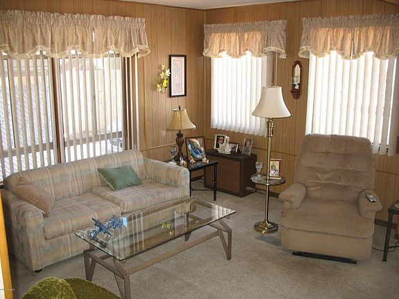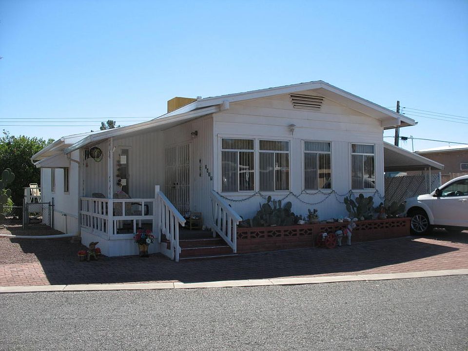 Very well cared for partially furnished north facing home with great mountain views and living room open to the kitchen and dining. Original 10 x 40 home has had an extensive 13 x 30 addition that makes it appear like a doublewide. Bedrooms have built-in storage and laundry is conveniently located off the master bedroom. There is a comfortable front porch/patio for morning coffee and viewing the mountains. There are two orange trees in the yard. The HOA fee includes unlimited golf, tennis, pickle ball, shuffleboard, 3 pools, spa, exercise room, trash collection, and a lot more. You own the land!