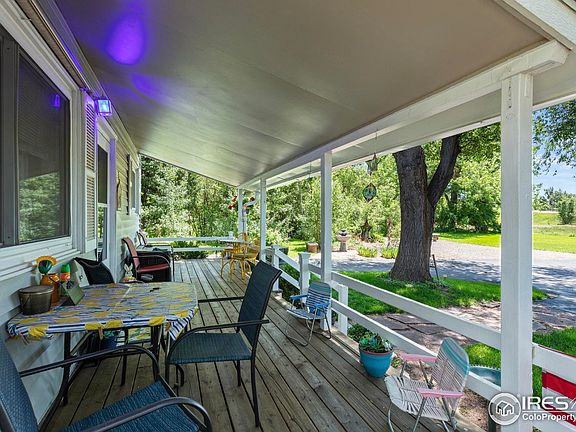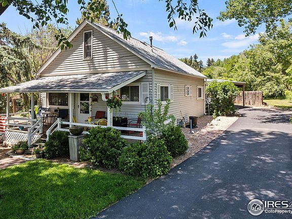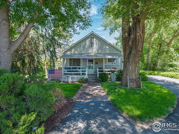 Tucked away on a long paved driveway, this peaceful 2.12-acre property features two charming homes surrounded by mature trees, gardens, and a seasonal stream. The main farmhouse welcomes you with a classic front porch and spacious open floor plan. Inside you'll find a bright family room, large dining area, private primary suite, and additional bedrooms upstairs. The kitchen offers a pantry and access to the fenced backyard-perfect for pets or gardening. A detached studio home sits towards the back of the property and has been succesfully used as an Airbnb. It includes a large bedroom, full bath, laundry, and a roomy family and dining area. A kitchenette with sink, counter, and microwave could easily be ugraded with a stove/oven for full independent living. The property also features RV hookups, multiple sheds, and lovely views of the foothills. Located in desirable West Loveland, near the Big Thompson Canyon, Sweetheart Winery, and Mariana Butte Golf Course & Restaurant-all just a short drive to Estes Park! No HOA. A rare opportunity for multi-generational living, investment income, or your own peaceful retreat. 24 hour notice on showings please.