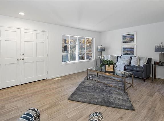 Awesome renovation of this 1400+ square foot home! Move right in - all the work and updating has been done. Open floorplan with soft neutral decor, wood-look porcelain tile flooring throughout. 2 bedrooms, 2.5 baths, main level laundry. Large family room with bow window, butlers pantry/drybar with granite countertop, fireplace with marble surround. Beautiful kitchen with white cabinetry, granite countertops, tile backsplash, stainless appliances - including refrigerator, gas range/stove, stainless range hood. Huge dining area, perfect for entertaining, with atrium doors leading to deck and yard area! Convenient main floor laundry/mud room and half bath located off the kitchen area. Large master suite with huge walk-in closet and remodeled bath with shower and vanity with granite countertop. Updated hall bath with vanity with granite countertop. New deck. One car garage. Basement is unfinished and awaiting your finishing touches! Seller providing a 2-10 Home Warranty at a cost of $505