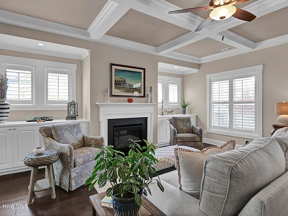 This meticulously maintained Charleston-style offers over 2,600 square feet of bright, open-concept living. The first floor features a spacious primary suite, a dedicated home office, a cozy living area with a gas fireplace, and a welcoming porch perfect for coffee or cocktails. The modern kitchen and dining area flow seamlessly for effortless entertaining.