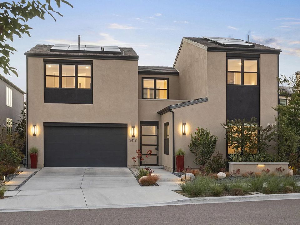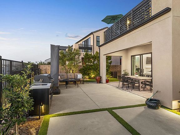 Perched atop an elevated lot in Pacific Highlands Ranch, this light, bright, and spacious house is the epitome of luxury living. The expansive kitchen is a chef and entertainer's delight with stainless steel Bosch and Sub-Zero appliances, double ovens, and beautiful quartz countertops open to the dining and greatrooms for easy entertaining. Enjoy a cozy night in with the gas fireplace and built in surround sound, or slide the doors open for seamless outdoor entertaining with access to the courtyard and covered outdoor California room. Each of the four spacious bedrooms feature an ensuite bath, and the first level even has a separate entrance, living space, and kitchenette for possible generational living, guest space, or even rental potential. The second level has a spacious loft area which is great for office, exercise or play area, or could be converted to a 5th bedroom if needed. Primary bedroom has large walk-in closet, gorgeous bath with separate tub and shower area, and balcony to enjoy the amazing sunset views and cool ocean breeze year round. 8.5kw owned solar for low bills! Great amenities with 2 clubhouses a short walk away, each offering a junior Olympic-sized pool, billiards, BBQ area, fitness center, dog park, and more! You will enjoy easy access to top rated schools (Torrey Pines, Cathedral Catholic, and Canyon Crest High Schools), fantastic dining, shopping, and nearby freeway connections, with a short drive to the popular beaches of Del Mar. This coveted home in the prime Pacific Highlands Ranch neighborhood is not to be missed and a must see for the price!
