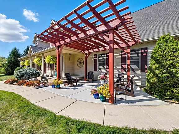Welcome to your own slice of country paradise! This stunning 5-bedroom, 2.5-bathroom home offers 3,504 square feet of comfortable living space designed for those who appreciate both indoor comfort and outdoor adventures. Step inside to discover the vaulted ceilings and a cozy fireplace in the living room, creating an inviting atmosphere perfect for family gatherings. The thoughtful layout includes a charming breakfast nook where morning coffee tastes even better, and spacious bedrooms provide peaceful retreats for everyone. The real magic happens outdoors, where this property truly shines. Relax under the front porch pergola or entertain guests on the open back deck. The heated pole barn is a game-changer, featuring its own bathroom, finished room, and abundant storage space – ideal for workshops, hobbies, or housing your toys. An attached covered patio extends your entertaining options. Recent improvements include a new asphalt driveway and basketball court added in 2023, plus a Honeywell security system for peace of mind. Whether you're seeking space to spread out, room for hobbies, or simply a place to call home, this property delivers on every front.