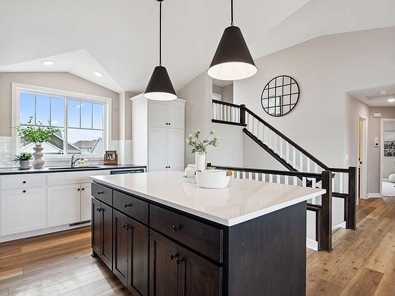 4.99% financing available on this Quick Move-in home! Program details available upon request. Home is complete, landscaped, decorated and available for sale. Welcome to the Jasmine model by OneTenTen Homes. This beautifully designed home features a vaulted great room that seamlessly connects the kitchen, dining, and living areas. The gourmet kitchen boasts oversized windows, an expansive island, and custom cabinetry with quartz countertops. The private, vaulted primary suite offers a luxurious walk-in shower, soaking tub, and an extra-large walk-in closet. The finished lower level includes two additional bedrooms, a full bath, and a spacious rec room with a cozy gas fireplace, all crafted with premium-quality materials throughout.