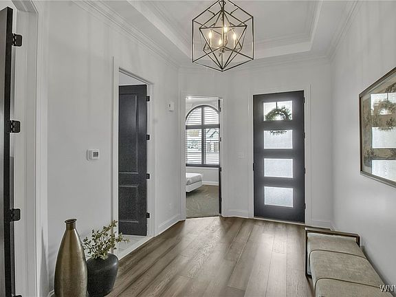 The Key To Your Dream Home is here at this stunning 2021 Designer Homes Built Patio Home offering 3 Beds, 2 Full Baths & 1,728 sq. ft. of thoughtfully designed, low-maintenance luxury. You Simply cannot build this same size patio home for the price! Enjoy lower taxes, first-floor living, and high-end finishes throughout. Upon entering you'll notice the Impressive 10-ft ceilings, 8-ft doors, wide hallways, luxury vinyl plank flooring & oversized windows creating a bright, open atmosphere from the moment you enter the home.Cozy & comfortable living room features a sleek gas fireplace, recessed lighting, and an effortless flow into the dining area & dream kitchen & has a sliding glass door leading to your private concrete patio. A striking dry bar w/custom black cabinetry, diamond studded hardware, wine storage, beverage fridge, and designer tile adds sophistication and functionality for all your entertaining needs.The chef’s dream kitchen stands out with white custom cabinetry, gold hardware, pendant lighting, quartz countertops, a large island, high-end stainless appliances, and an eye-catching full-height tile backsplash. Transom windows in the kitchen area bring in natural light while maintaining privacy.The spacious primary suite offers a serene retreat with tray ceiling, upgraded carpeting, spa-inspired ensuite bath featuring a double-sink vanity with gold fixtures, quartz counters, modern oval mirrors, and a beautifully oversized tiled walk-in shower, bench seating & designer accent tile.Two additional bedrooms provide versatility for guests, office space, or hobby rooms.Full Bath off the hallway features full tile shower/tub.Lower level has endless possibilities with E-gress window installed & ready to make it your own. Step outside to a clean, easy-maintenance exterior with a covered front entry, upgraded full stone façade, and a wide concrete driveway leading to the attached two car garage.The patio home lifestyle means more freedom—no heavy upkeep and more time to enjoy the things you love.Modern, stylish, and move-in ready, this home blends custom quality with effortless living in one exceptional package. Open House SUNDAY 11-16@11-1pm