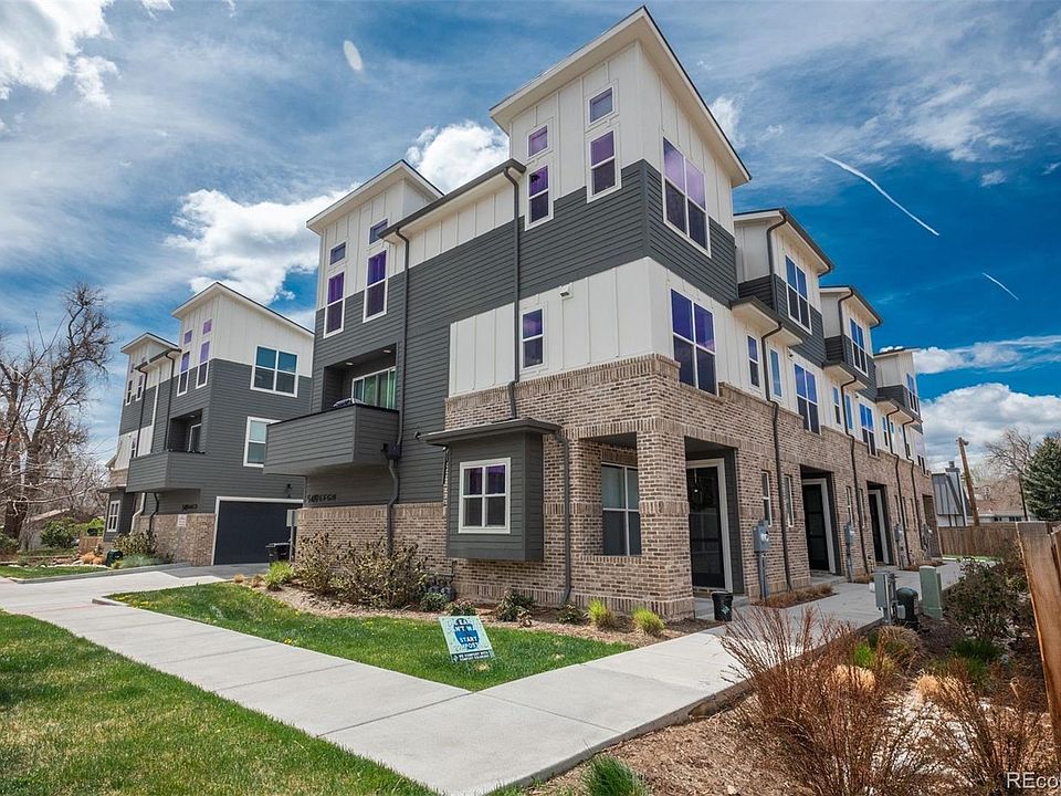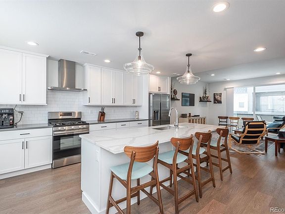 Discover the charm and convenience of this exquisite townhome, perfectly located near Olde Town Arvada. Featuring 3 bedrooms and 3 bathrooms, this home is designed for modern living and ready for you to move in and enjoy. As you enter, you'll be welcomed by a beautifully crafted built-in coat rack and storage. An adaptable office or bedroom, complete with a ¾ bath, offers flexibility to suit your needs. Head upstairs to the expansive great room, where bright white cabinets with soft-close drawers enhance the elegant kitchen. This chef's paradise boasts quartz countertops, a stylish backsplash, and a generous kitchen island with additional seating, making it ideal for entertaining. High-end appliances, including a gas stove/oven, microwave, dishwasher, and refrigerator, complete the space. The wide-plank hardwood floors extend throughout the main level, where abundant natural light creates a warm and inviting atmosphere. Open the glass doors to the deck, perfect for enjoying sunshine and fresh air. Retreat to the primary bedroom, a serene space with vaulted ceilings, a large walk-in closet with a charming barn door, and a luxurious bathroom featuring quartz countertops, double sinks, and stylish tile flooring. An additional bedroom with a full bath provides added comfort and convenience. Plus, the upstairs laundry room adds practicality to your daily routine. Additional highlights include a tankless water heater for endless hot showers and a 2-car attached garage. Situated centrally in Olde Town Arvada, you'll have easy access to the light rail, shopping, and all the vibrant amenities this community offers. Don’t miss your chance to make this beautiful townhome your own—schedule a visit today!