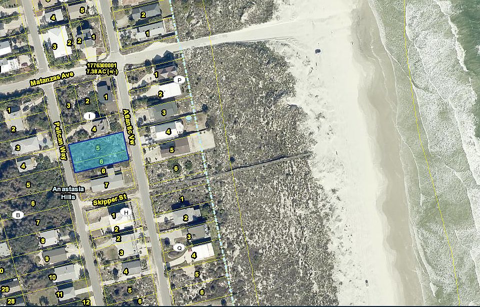 More photos coming soon! One and a half lots in the highly desirable neighborhood of Anastasia Hills. This lot is on the high dune which offers expansive ocean views. There are very few lots left in Anastasia Hills and this large lot (75x145) offers more architectural options than the standard 50 ft. lots located in this neighborhood.