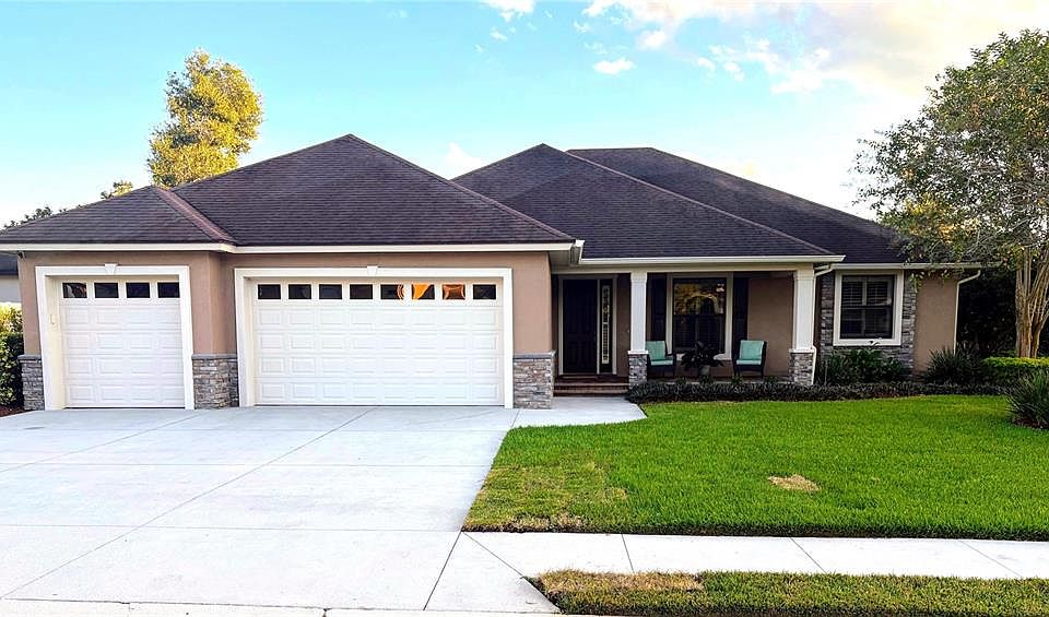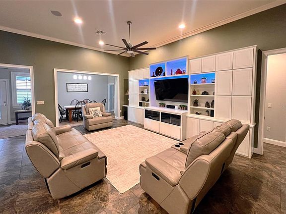 Custom-Built Ernie White construction in a Prime North Lakeland Location Welcome to this meticulously maintained 2015 home, offering nearly 2,400 sq ft of thoughtfully designed living space in a well-established community. With only one owner, this residence radiates pride of ownership and timeless charm. From the moment you arrive, the paver front porch invites you to relax and enjoy a friendly neighborhood. Step inside to a welcoming foyer that opens into a spacious, high-ceilinged floor plan filled with natural light and modern touches. The great room features a custom built-in entertainment center, prewired for your TV and enhanced with ambient lighting—perfect for cozy nights or stylish entertaining. The kitchen is a chef’s delight, boasting updated stainless steel appliances, granite countertops, and a generous pantry. This home offers 3 comfortable bedrooms, 2 full bathrooms, and 2 dedicated office spaces with built-in desks—ideal for remote work, creative pursuits, or study zones. Tech-savvy upgrades include Cat6 network drops in every room, 5.1 surround sound wiring in the living room, and a smart Nest thermostat for energy-efficient comfort. Wood shutters on all windows provide privacy and help reduce energy costs, while a digital TV antenna means no more cable bills. The oversized three-car garage includes a workshop area, metal cabinets, and a side door leading to a spacious backyard. Sitting on a .42-acre lot, there’s ample room to build your dream pool or create your own outdoor oasis. Don’t miss this rare opportunity to own a beautifully upgraded home that blends comfort, style, and smart living. Schedule your private showing today!