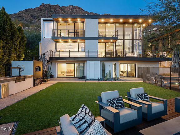 Perched atop Camelback Mountain overlooking prestigious Arcadia, this magazine-worthy estate was fully renovated in 2018, masterfully combining breathtaking views, natural elements, and luxurious finishes. Floor-to-ceiling windows flood the home with natural light and frame unrivaled sunrise and sunset views, creating an unparalleled living experience. The exterior of the home, landscape & hardscape were entirely renovated in 2019, and the additions of a stunning 1,242-square-foot guest casita in 2020 and pickleball court in 2024 arguably take this property to the next level.