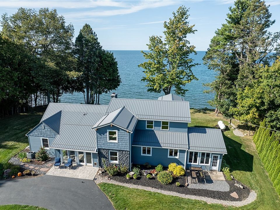 Lake life dream come true and open concept, first floor living at its finest. Sunsets, calming waters, lake breezes, surrounding orchards, privacy. Gather with loved ones on Lake Ontario 365 days a year. Very private ~5 acre estate, with 265’ frontage on Lake Ontario. High-end custom renovations. Breathtaking views, light filled, open floor plan. Primary suite on first for comfortable first floor living. The hard work and big ticket items are done...over $300K in improvements since 2017. New Septic System in 2017; Beautiful Kitchen Remodel; Gorgeous Ensuite Remodel with Heated Bathroom Floors; Tasteful Half Bath and Laundry Room Remodel; 2018 Installed 2 HE Propane Furnaces and 2 A/C Units; 2019 Metal Roof and Vinyl Siding; Many Replacement Windows; New Storage Shed (12x24); Extensive Drainage Installation (French Drain); Whole House Generator; Many New Doors/Overhead Doors; Amazing Sunroom with Gas Fireplace. Conveniently located just 11 minutes to Sodus Point, 6 minutes to Pultneyville, 25 minutes to Webster. Showings begin on Wednesday, September 17, 2025 at 9:00am. Negotiations begin on Wednesday, September 24, 2025 at 12:00pm.