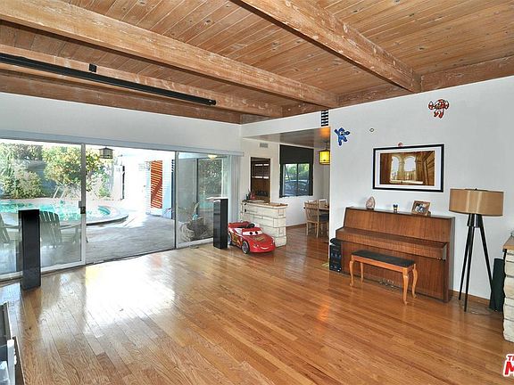 Architectural 1955 Mid-Century home located in Magnolia Woods area of Sherman Oaks. Wonderful opportunity to live in a desirable cul de sac street in a home with classic original details. Hardwood floors and beautiful wood-beamed ceilings in spacious living room leading out to pool and patio area for great indoor, outdoor entertaining flow. This home offers 2 spacious bedrooms and a convertible den with fireplace and 3/4 bath conveniently located for use from the pool area. A brand new beautiful top of the line main bathroom enhances this special home. New copper plumbing, detached 2 car garage and ample driveway parking. Fenced pool, heating & AC. Great opportunity - Great Value - Easy to show !!