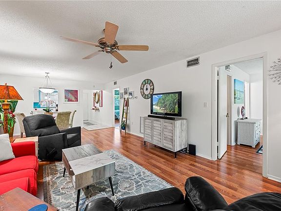 Home sweet Home!!! Turnkey furnished 2 Bedroom, 2 Bath condo in fabulous central location. This spacious condo offers a Great room floor plan with upgrades such as, all New Hurricane rated Windows and Sliders, Laminate and Tile flooring, Kitchen with tray ceiling and newer appliances, Dining area, 2 full Bathrooms, Lovely furnishings, King size bed in Primary bedroom, 2 twins in 2nd bedroom, Private screened lanai with Western exposure, Beautiful Sunsets, laundry area with washer/dryer and a convenient covered Carport. Excellent central location, next door to Hibiscus public Golf course, Close to shopping, dining and just 1 mile from the Pickleball park, and 4 miles from Downtown and the Beach. This condo is located on the 3rd floor with an elevator. HOA fees include Cable, water, recreation facilities and more. This is a 55+ Community with Wonderful Pool and Clubhouse.