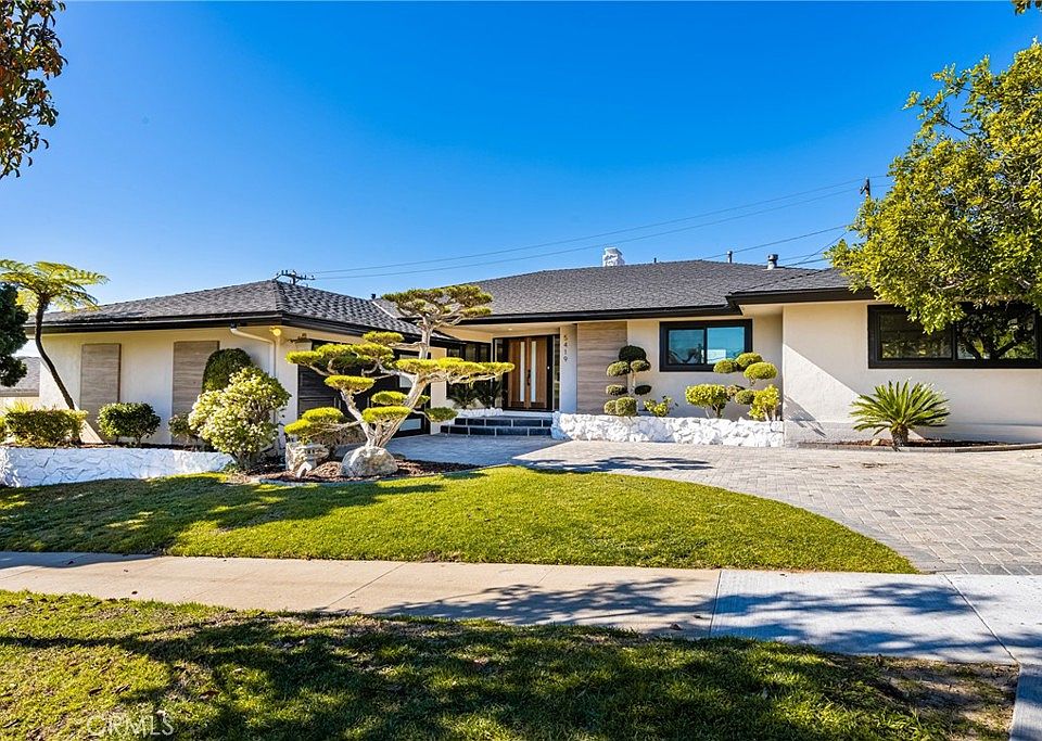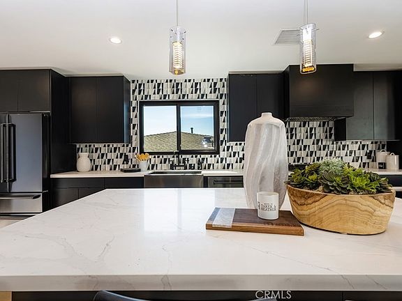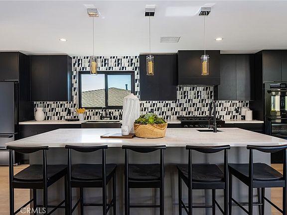 Another beautiful home meticulously remodeled and designed by Tarek and Heather El Moussa from HGTV!! They spent months reimagining this home from top to bottom! No expense was spared on the transformation of this 4 bedroom, 4 bathroom home in the highly coveted Ladera Heights neighborhood. This home is pristine and the many designer touches are highlighted by all the natural light. Whether you have a growing family or love to entertain, this home is perfect! Beautiful feature walls, hand selected designer lighting and fixtures, and a floor to ceiling double sided smooth plaster fireplace are just some of the custom touches that make this home unlike any other home on the market. The wide plank flooring throughout the home is not only beautiful, but it is easily maintained. The chef's kitchen has been completely redone with all new flat-panel cabinets, beautiful Quartz counter tops, a large island with seating, a stunning tile backsplash, a single-basin farm sink, and high-end stainless appliances. The primary bedroom and bathroom is a spa like oasis. The bathroom features a new dual vanity, black and bronze fixtures, quartz counter tops and a huge custom tiled shower with bench, and a separate soaking tub. The secondary bathrooms are just as impressive with new vanities, high end fixtures, and custom tiled showers. All bedrooms are good sized with ample closet space and boast the same wide plank flooring as the rest of the home. The backyard features a large paver patio, mature landscaping, a large grass area, and a meticulously crafted zen garden! All of this AND new dual pane windows, accordian glass doors, and a wet bar. Show your most discerning buyers this gorgeously updated zen retreat, they are sure to fall in love with one of Tarek and Heather's custom designed homes!!