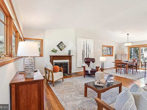 In the heart of Glen Echo Heights, this beautifully renovated mid-century modern home features Craftsman detail and tasteful finishes. Enter a dramatic vaulted living room - open and light-filled - uplifting and fresh. Large windows bring the lovely wooded setting into the home. Wood burning fireplace. Dining room with soaring ceilings and sliding glass doors lead onto large deck overlooking trees. Wonderful renovated kitchen with new white quartz countertop and subway tile, abundant custom cabinetry, stainless appliances - bright and sunny! Gorgeous just-refinished wood floors. Inspired in feel and flow. Owner's bedroom suite with pretty ensuite renovated bath. Two more good sized bedrooms on main level. New second bathroom! Amazing lower level with inviting family room surrounded with large windows, a bright spacious bedroom and (third) full bath - great for au pair. Whitman/Pyle/Wood Acres! Laundry room and two additional storage rooms. Woodsy neighborhood with great walking hills, quiet dead end street. Incredible accessibility - .6 mile to the C&O Canal and the Potomac River - blue herons, woodpeckers, turtles. Close to Sumner Place, French bakery, Italian restaurant, Sushi, Whole Foods. Three minute drive to Glen Echo Park/carousel, puppet theatre, art classes. Three local farmer's markets. Downtown Bethesda just a nine minute drive! Bucolic woodsy neighborhood. The home of an artist for years - loved for its refined comfortable space, natural light and beautiful setting.