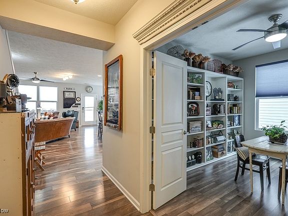 Open floor planStainless steel appliancesGranite countertopsPeaceful private retreatNeutral decorStone fireplace wallLaminate flooring