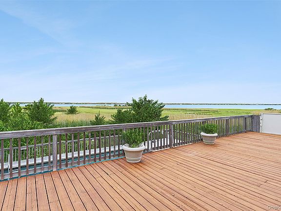 With unobstructed water views over +/-4.2 acres, this Westhampton bayfront beach house is a private oasis of coastal living. Deeded ocean access provides convenience to enjoy Dune Road's white sand beaches. The open floor plan of the house and multiple sliders to the expansive deck perfectly frame the world-class bay views. The great room offers high ceilings and a wood-burning fireplace. The kitchen and dining area open to the deck to offer both indoor and outdoor dining options. Accommodations include four well-sized bedrooms and two full bathrooms. Outdoor amenities include a heated, gunite 18' x 40' pool, ample decking for entertaining and lounging, and a pool bathroom with shower. With a strong rental history and close proximity to Westhampton Beach's restaurants, boutique shopping, Performing Arts Center, and weekend farmers' market make this beach house one not to be missed!