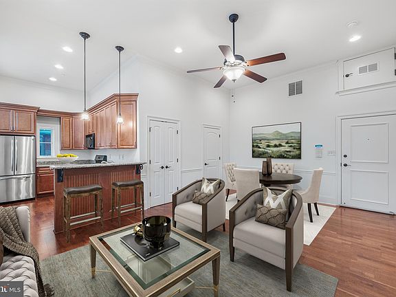 MILL HOUSE CONDOS are a distinguished community in the always desirable Borough of Conshohocken. This building once known as the historic ACME Sawmill has been created into 8 of the most unique living spaces. Unit #2 is a first floor, 1 bedroom with hardwood floors, 6ft windows, 15ft ceilings, crown molding and custom wainscoting throughout. The Kitchen includes stainless appliances, granite countertops, breakfast bar, the highest quality cabinetry, and beautiful wood flooring. The living area has an open floor plan and is very spacious which allows for maximum comfort. The Primary Bedroom has both a full bathroom with walk-in shower and a large closet. Amenities include a security system, keyless entry, assigned parking space, private side entrance for building residents, main entrance for guests, lobby including waiting area, mail station, intercom to allow entry for guests, washer/dryer, refrigerator, microwave, dishwasher, garbage disposal, and gas stove/oven. The detail is very apparent in all aspects including the trim work, oversized windows, light fixtures, and color schemes. Short walk to a many different restaurants in the area including Restaurant Row also known as Fayette St. You're also able to walk to the train, gym, yoga studio, bus and a bike trail. Conshohocken is highly desired due to it is very close location to major roads, highways, and to Center City. The Spring Mill Train Station is another way for easy access to the city. Condo fee includes common area maintenance, exterior building maintenance, insurance, lawn maintenance, snow removal, and trash.