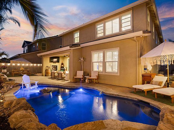 Pebble tec in-ground poolBuilt-in gas fireplacePersonal backyard oasisCalifornia roomDedicated media roomSpa-inspired bathroomSpacious downstairs bedroom