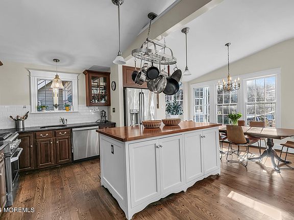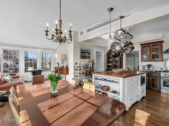 Nestled in the prestigious Locust area, this charming historic farmhouse invites you to embrace the tranquility of country living on 1.47 acres. Picture-perfect with hardwood floors, intricate woodwork, and newer windows, this home seamlessly marries old-world allure with modern comfort. The open kitchen, adorned with stainless steel appliances and granite counters, flows into a sun-drenched dining and family room, creating a warm space for gatherings. The solarium, with heated blue stone floors, beckons you into a spacious first-floor master suite, a haven of serenity with a fireplace, built-in cabinets, and a luxurious bath. Two firelit living rooms, a den, and an upstairs housing three bedrooms, a bath, and a cozy home office offer ample room for every room for every need. Step outside to a bluestone patio and a heated in-ground pool, embraced by mature trees and blooming perennials, creating a bucolic oasis. For the avid gardener, a vintage potting shed and corn crib await. A detached garage with an upstairs studio adds to the charm, offering a picturesque setting minutes away from city commutes, parks, rivers, and beaches. Embrace the historical essence with the seller's reassuring experience of joyful additions.