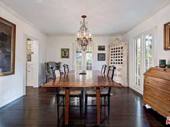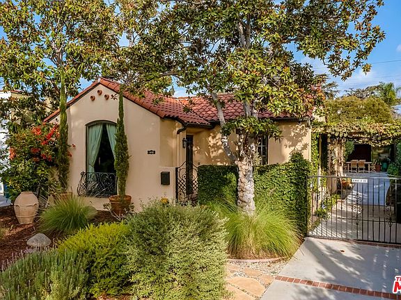 This romantic retreat with numerous upgrades is nestled on a tree lined street footsteps from popular Larchmont Village! Enter a stunning living room with barrel ceiling and fireplace opening to a warm and inviting, light-filled formal dining room. The kitchen with vaulted ceiling is beautifully remodeled and a dream for any cook. There are two en-suite bedrooms (primary bath tastefully updated). The primary bedroom opens to the lushly landscaped yard with graceful grapevines and fruit trees. The yard is also enhanced by a firepit, soaking tub and outdoor shower. The garage has been converted to a wonderful studio/ entertainment area with teak chevron floors and generous storage. A truly magical oasis!