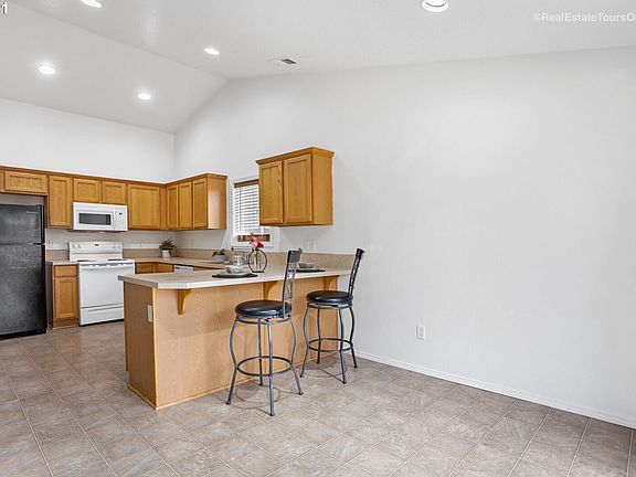1 story Craftsman in Paradise Pointe! Open concept living room, dining and kitchen area w/vaulted ceilings. Abundance of natural light. Kitchen offers generous breakfast bar, lots of counter space and storage! All appliances included. Master with full bath. Dining w/slider to patio. Laundry room. Stay comfortable all summer with AC. Spacious, fully fenced bkyard with patio ready for all your outdoor activities. Super location, minutes to I5, Hwy99 commute, Woodburn Outlet Mall, Walmart, grocery.